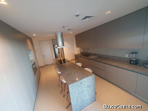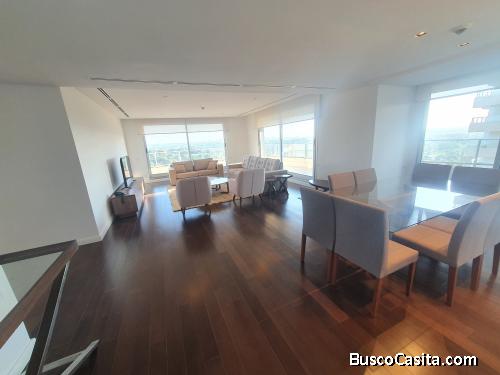 Departamento amoblado con 4 dormitorios, escritorio, dependencia de servicio y cochera doble.